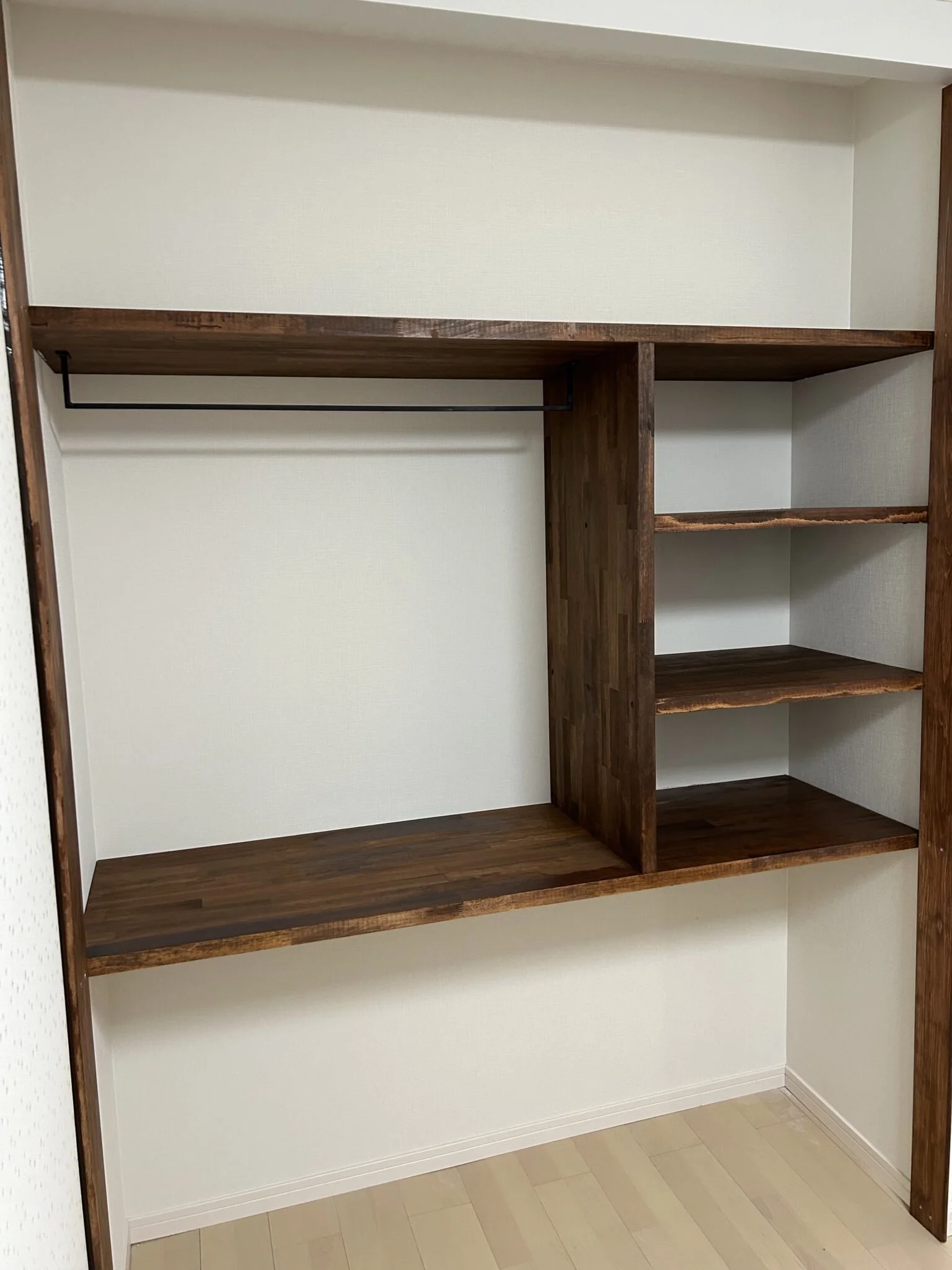 神戸市西区 クローゼット改修 5月18日 著者 VS DESIGN いつもお世話になってる、整骨院の先生のご自宅のクローゼットをプチリフォームしました^_^ 娘さんの成長に合わして、少し大人っぽく仕上げてみましたw 細い角がおしゃれなオーダーハンガーパイプ VS DESIGN