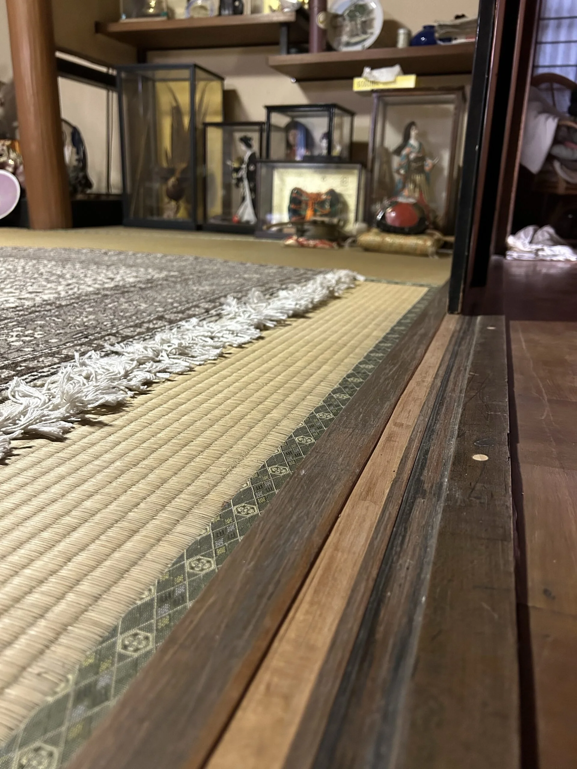 長い年月をかけて歪んだ敷居、鴨居…取替となると費用がかかるので修理にて対応しました。