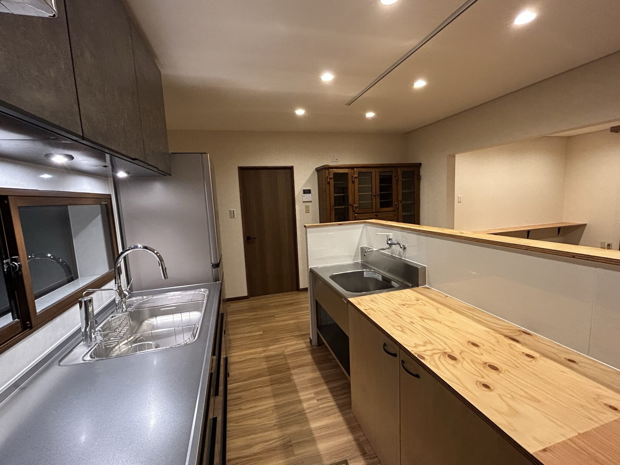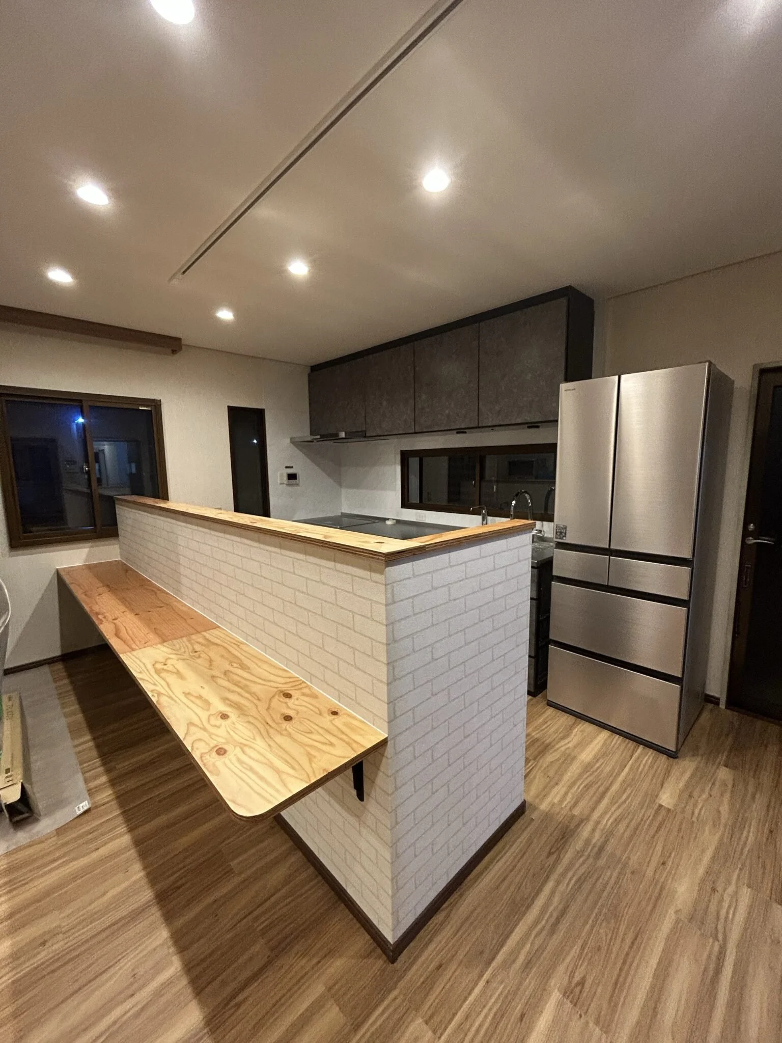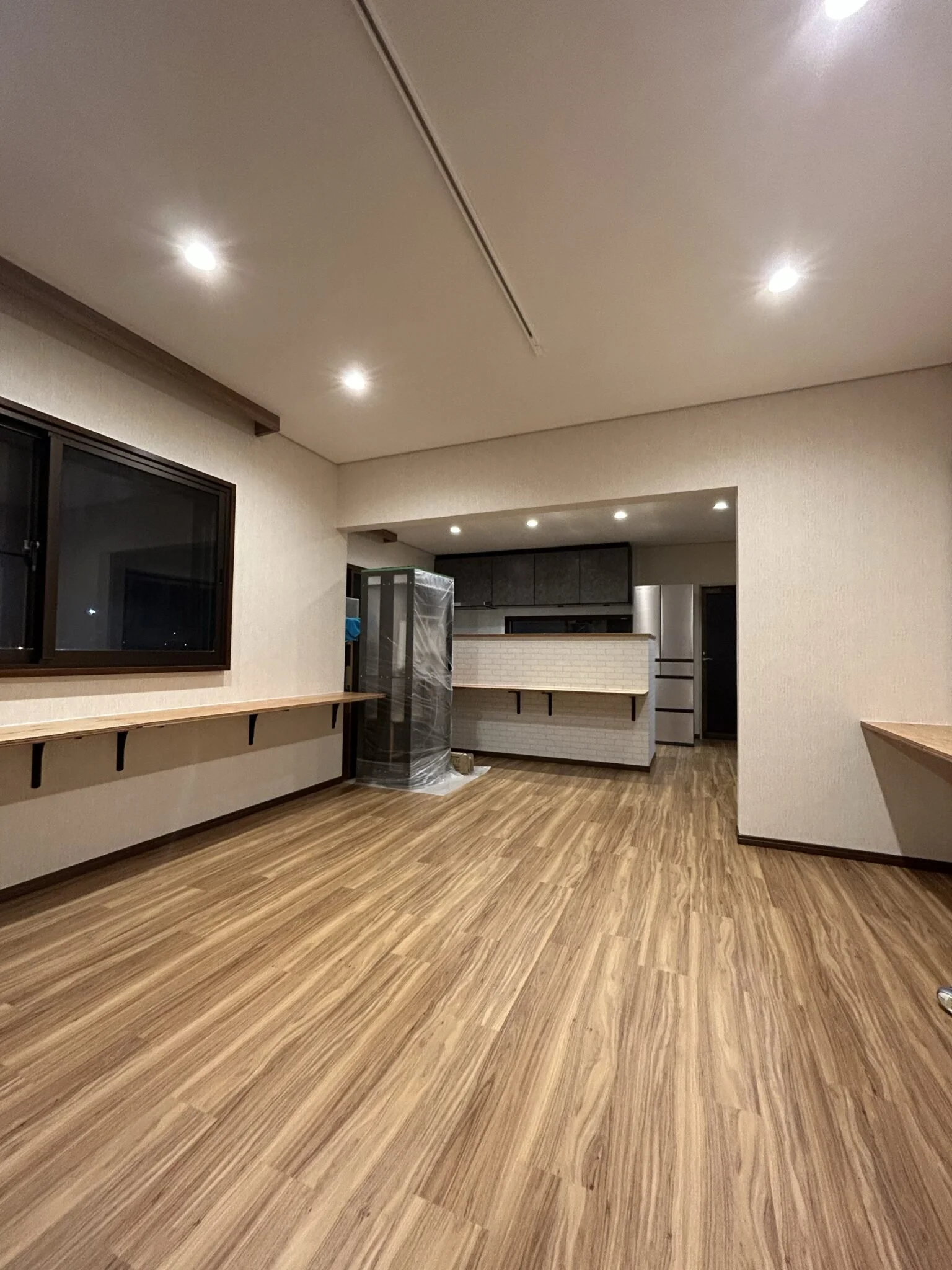 神戸市西区 カフェ風内装 リノベーション完成♪ 12月5日 著者 VS DESIGN 戸建て住宅の一階をリノベーションして、朝ごはん屋さんをオープンするお客様でした^_^ 床用の合板を研磨して仕上げた、低価格だけどしっかりと木目が感じれる造作カウンター^_^ クリア塗装後の秘密の1工程で、ツルツル感触のカウンター仕上がりに✨ リノベーション前 VS DESIGN