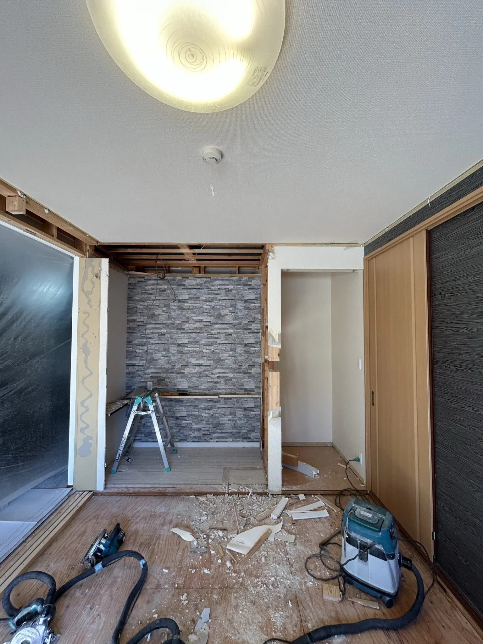 神戸市北区 和室リノベーション 12月5日 著者 VS DESIGN リビングとつながり、広々30畳✨ 和室から大変身!ワンちゃんのお手入れがやり易いように、長尺シートを貼りました。水濡れにも強く、傷もつきにくいのがメリット👍 施工前 解体〜工事中できる限り、リビングとの一体感を出すために不要な間仕切り壁や、垂れ壁を取り除きました。既設の建具も、ダイノックシートを貼り劇的に お洒落に変身しました^_^ VS DESIGN